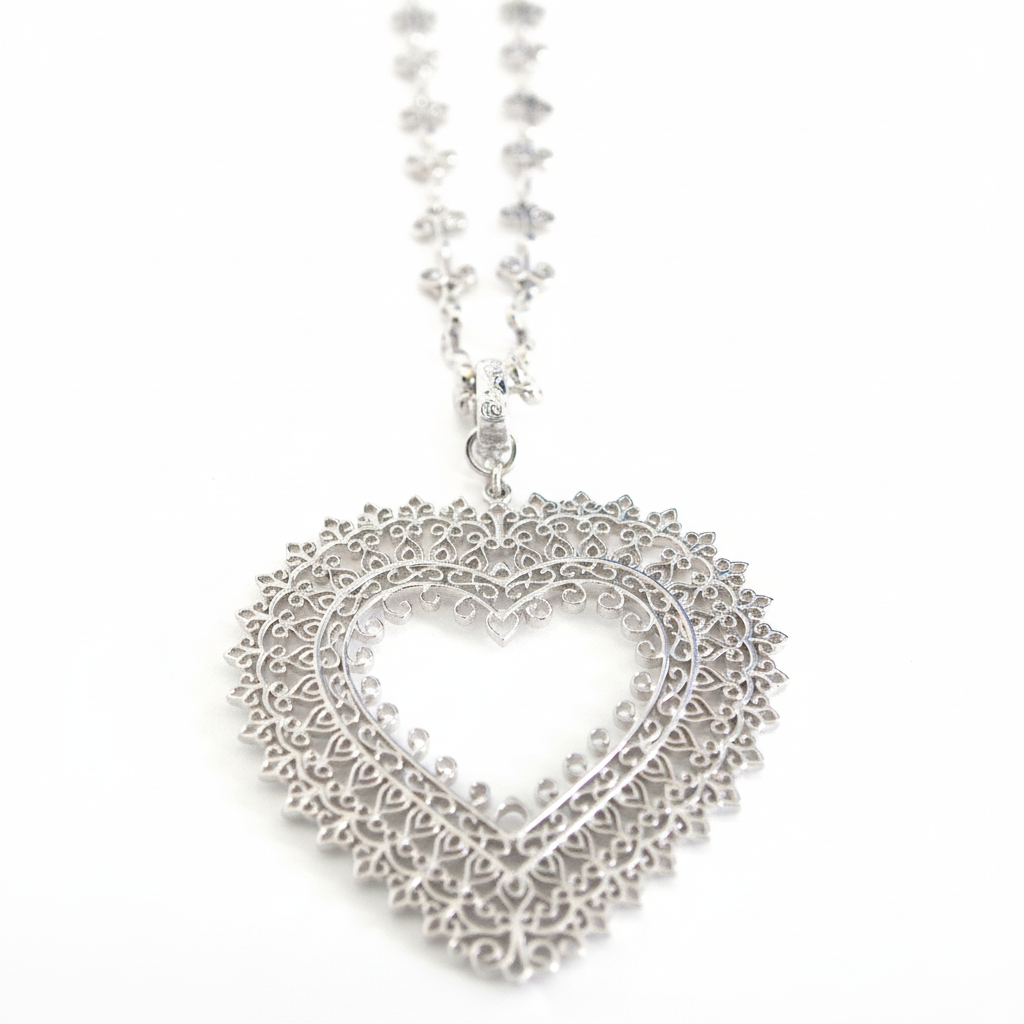 The Heart Medallion Pendant in 925 sterling silver is a daring statement piece for any bohemian romantic at heart. This pendant medallion's bezel opens to allow easy styling on your chain of choice or Filienna's Heart Long Chain in sterling silver. Chains are sold separately.